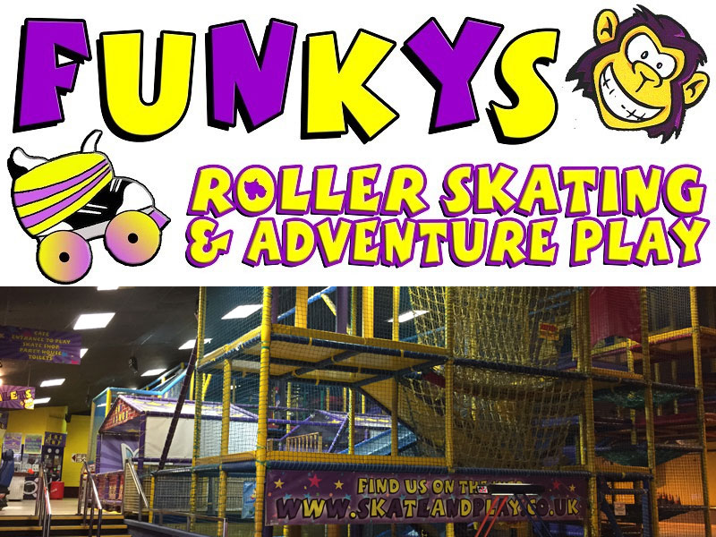 Funky’s have a purpose built maple wood roller skating rink and amazing adventure play area which stretches over 3 floors!