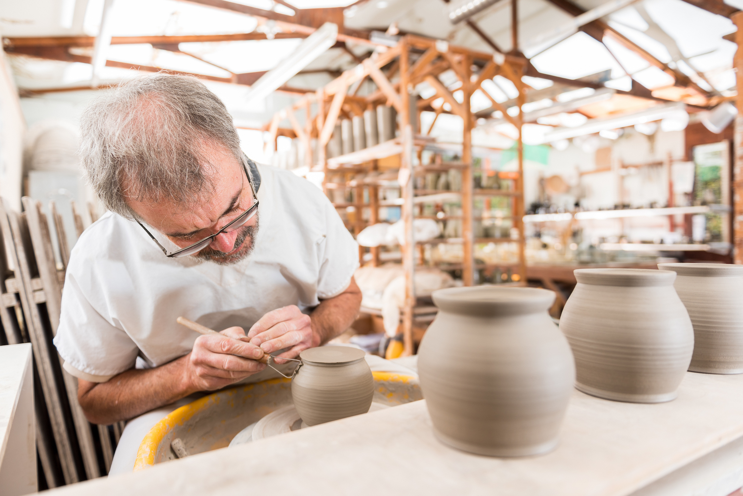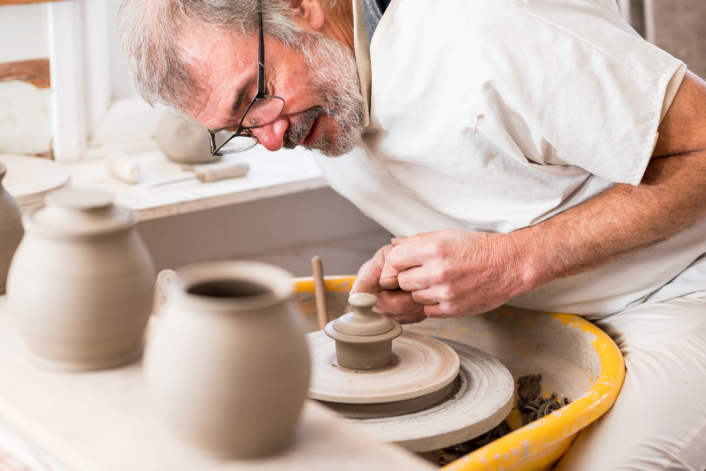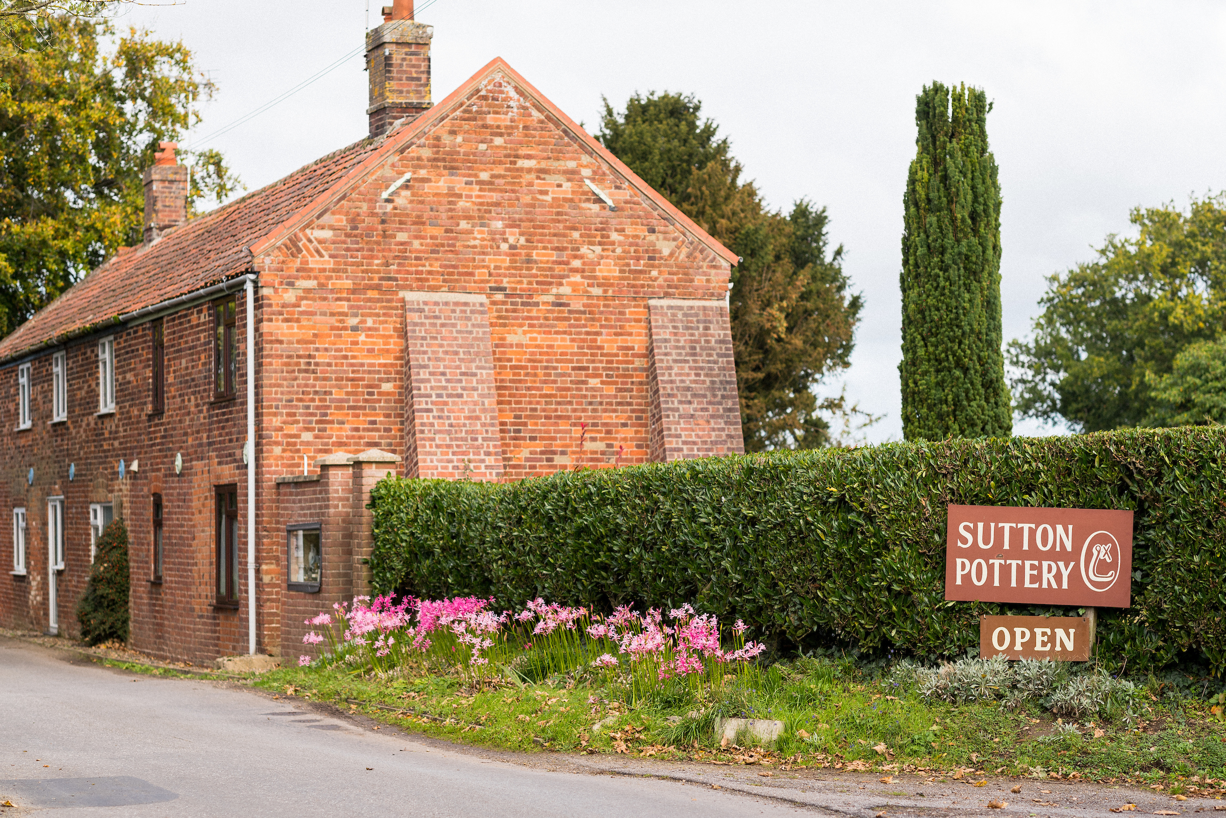 • Once past the Mill, turn left at the crossroads and this lane will bring you to Sutton Pottery, a small but busy studio, run by Malcolm Flatman. Malcolm specialises in beautiful, functional home ware, together with some decorative pieces and is happy to welcome visitors Monday to Friday. Should you wish to place an order, he can even send your pots by post!